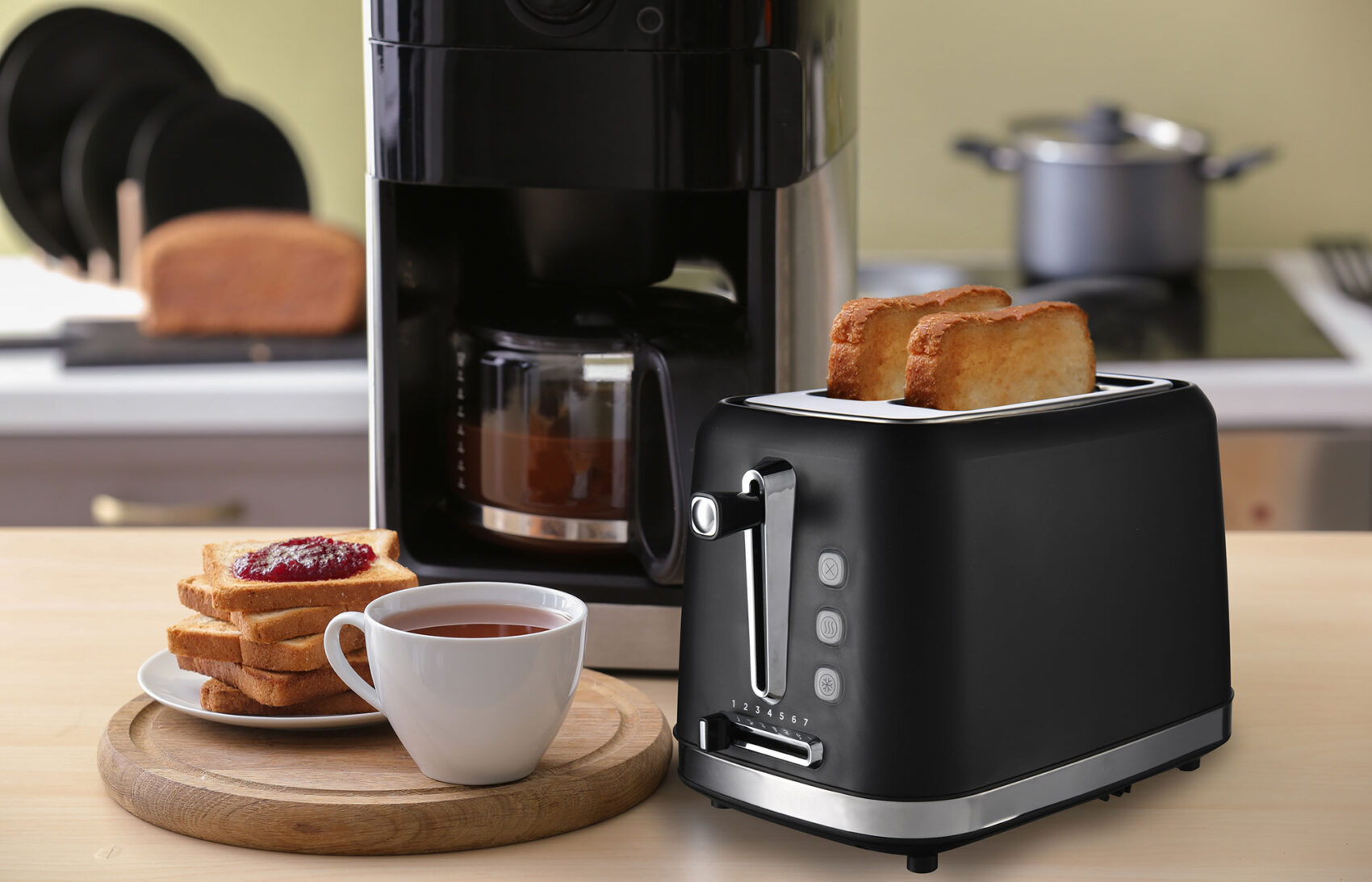 Enkel igangsetter hendel og separat stoppknapp for avbryting av program. Produsert i rustfritt stål og plast. Produktet er 25 cm lang, 14,5 cm bred og 19,5 cm høy. Integrert smuleoppsamler og 1 m lang ledning som samles under brødristeren. Gummiben for stabilitet. Totaleffekt 925 W. Rengjøring: Tørk av med fuktig klut. Smuleoppsamler løsnes lett, tømmes […]