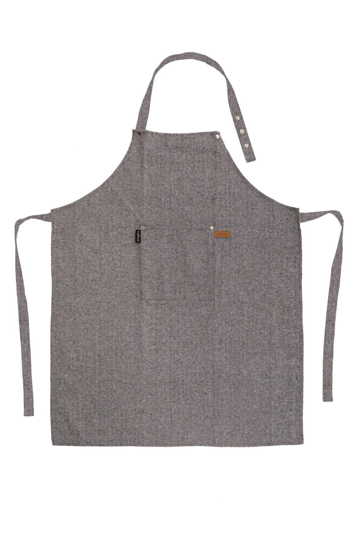 Flott forkle fra Sabor med fiskebensmønster og lekre detaljer i lysbrunt kunstskinn og messing knapper