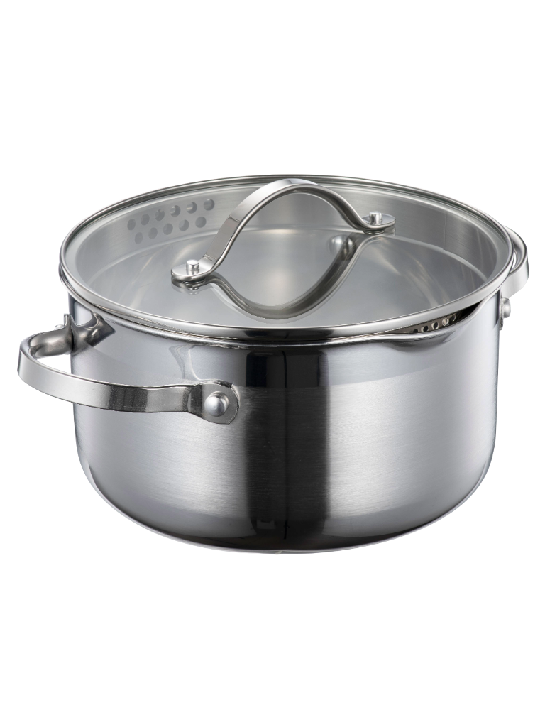 Gryten er bygget for å levere enestående varmefordeling og holdbarhet. Den har en 3-lags impact-bunn som sikrer jevn oppvarming fra bunn til topp. Bunnens unike oppbygning inkluderer 0,5 mm 18/8 rustfritt stål for en hygienisk overflate, 1,5 mm aluminium for optimal varmeledning, og 0,6 mm 18/0 rustfritt stål som gjør den kompatibel med alle typer koketopper, inkludert induksjon. Denne solide konstruksjonen gjør at gryten holder seg stabil og effektiv, selv ved høye temperaturer.