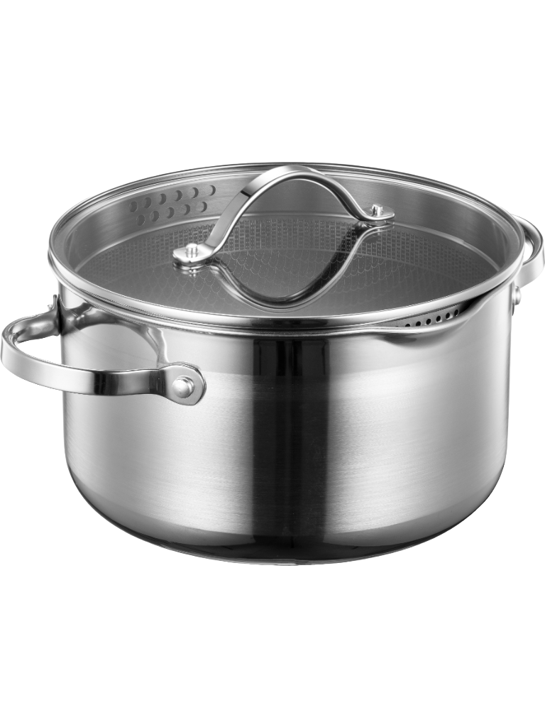 Den unike kombinasjonen av G7 keramisk belegg og laseretsing med stålforhøyninger sørger for at matvarer ikke fester seg, samtidig som du kan bruke mindre fett og olje. Induksjonsbunnen i aluminium og stål sikrer rask og jevn varmefordeling, mens det praktiske lokket med helletut og sil gjør serveringen smidig. Tåler alle koketopper, stekeovn opptil 260°C, og kan vaskes i oppvaskmaskin.