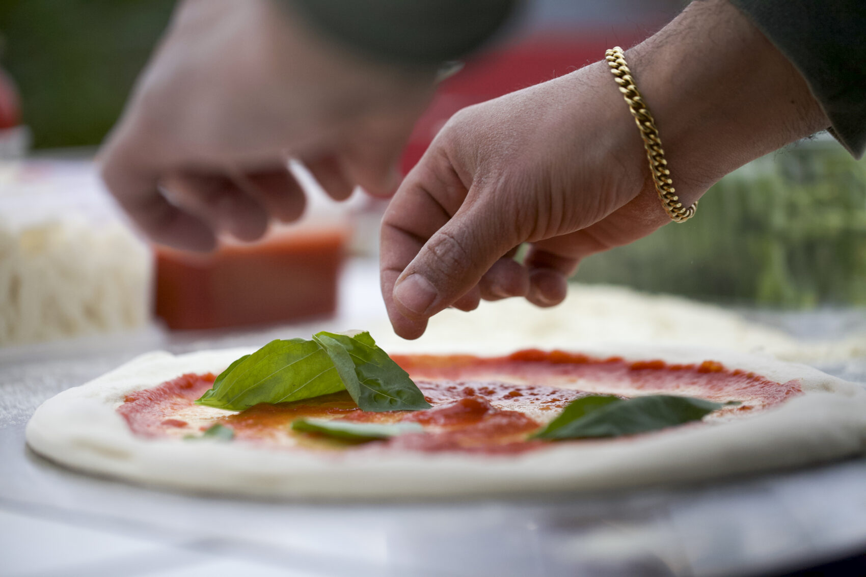 - Den enkleste formen for rød pizzasaus, og den mest klassiske. Ha tomater i en bolle og knus med fingrene. Ta ut eventuelle stilker. Smak til med salt, pepper og sukker,